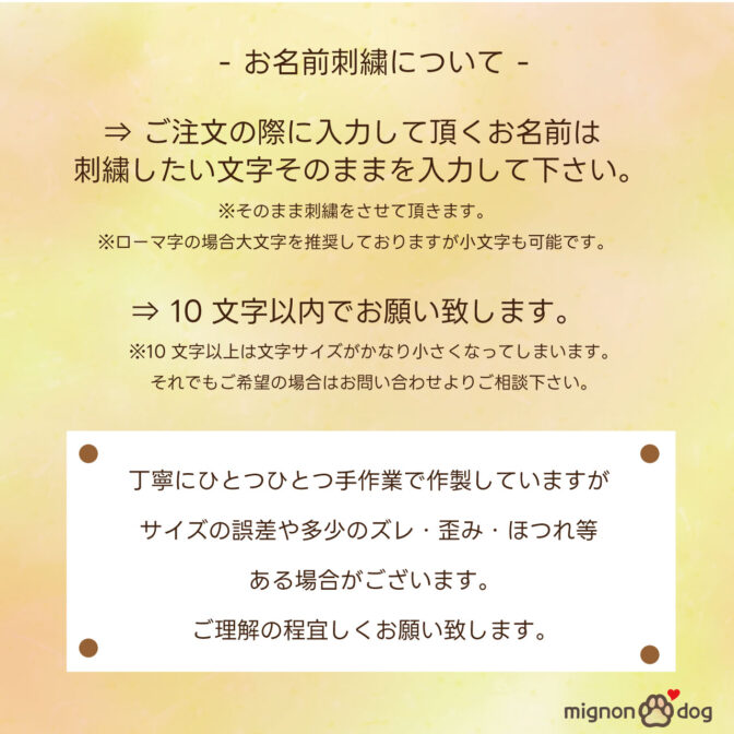 こちらの商品はご注文確定後にお名前刺繍を致します。