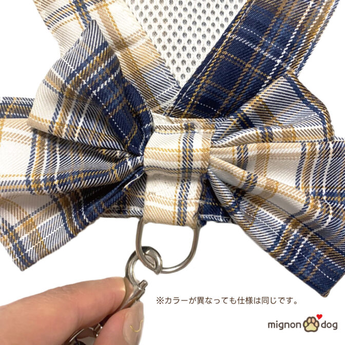 お散歩やお出かけ、旅行にオールシーズン使える大きなリボンがポイントの可愛いハーネス(胴輪)です。