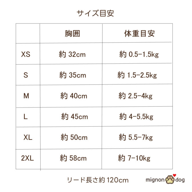 2XL:胸囲 約58cm、体重目安 約7-10kg